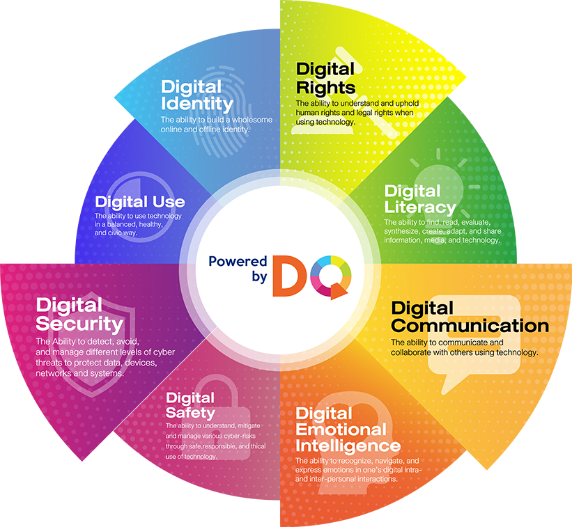 Digital Vaccine Powered by DQ is a comprehensive set of skills designed to equip individuals to effectively navigate the challenges of the digital age. It is structured around eight key dimensions: