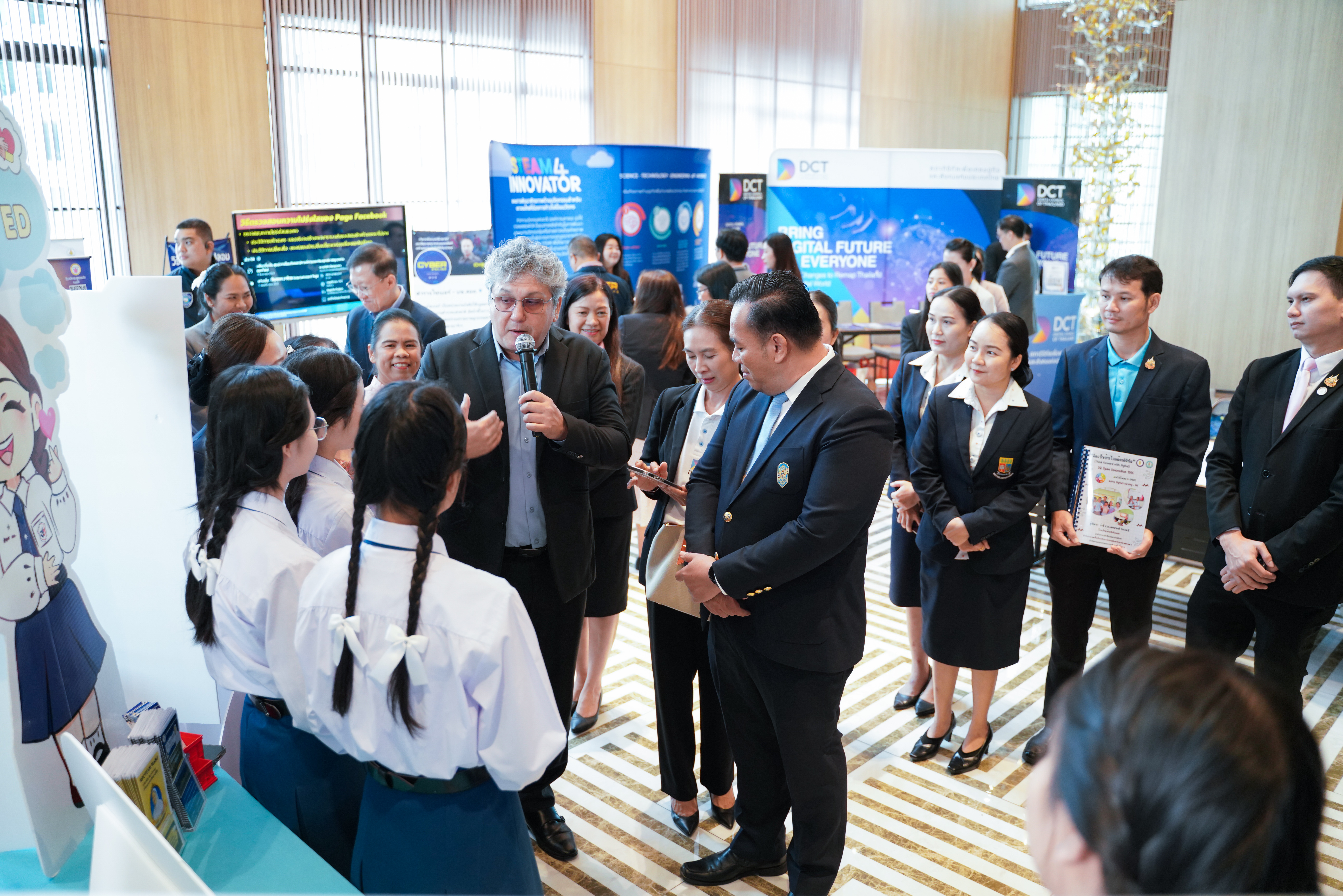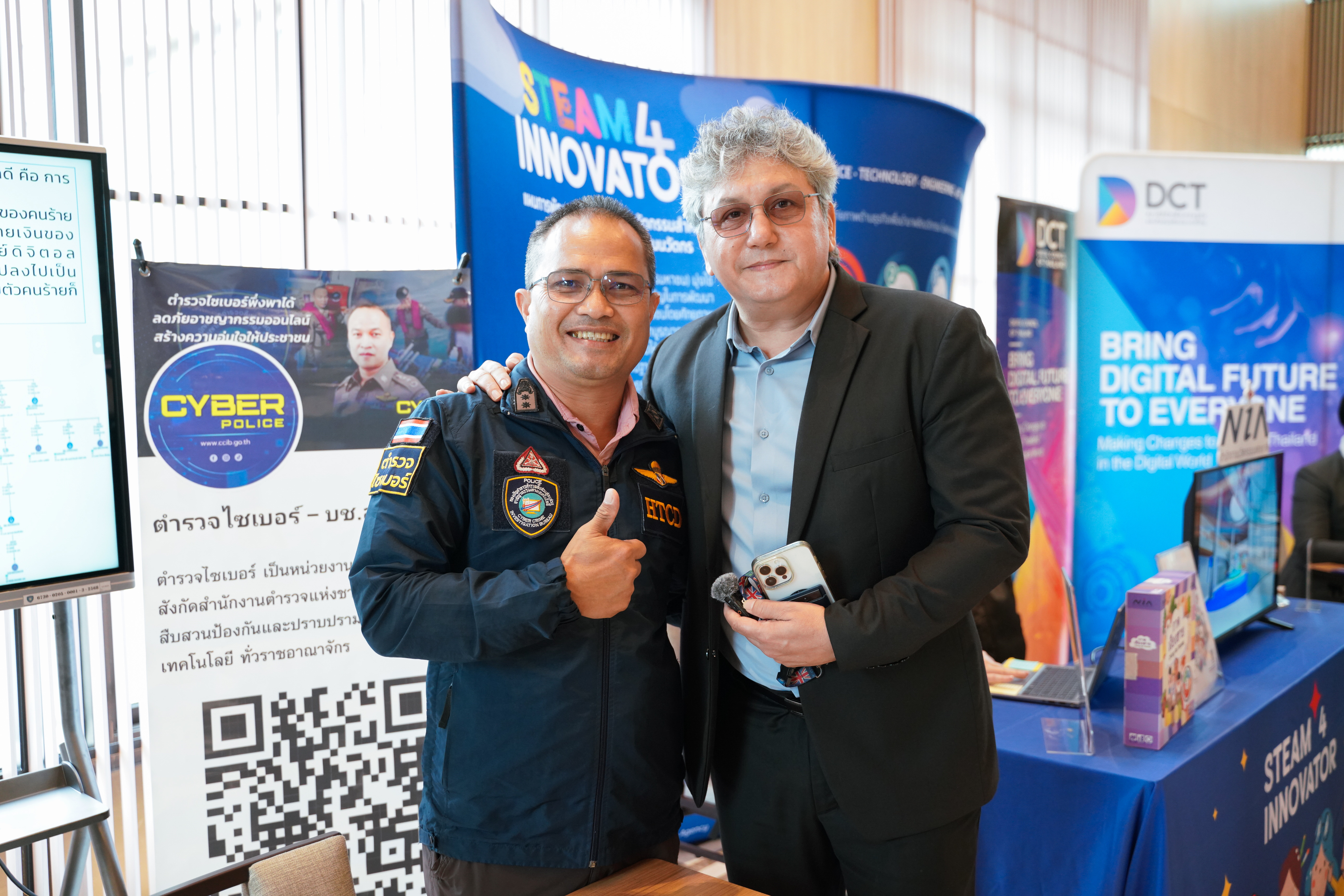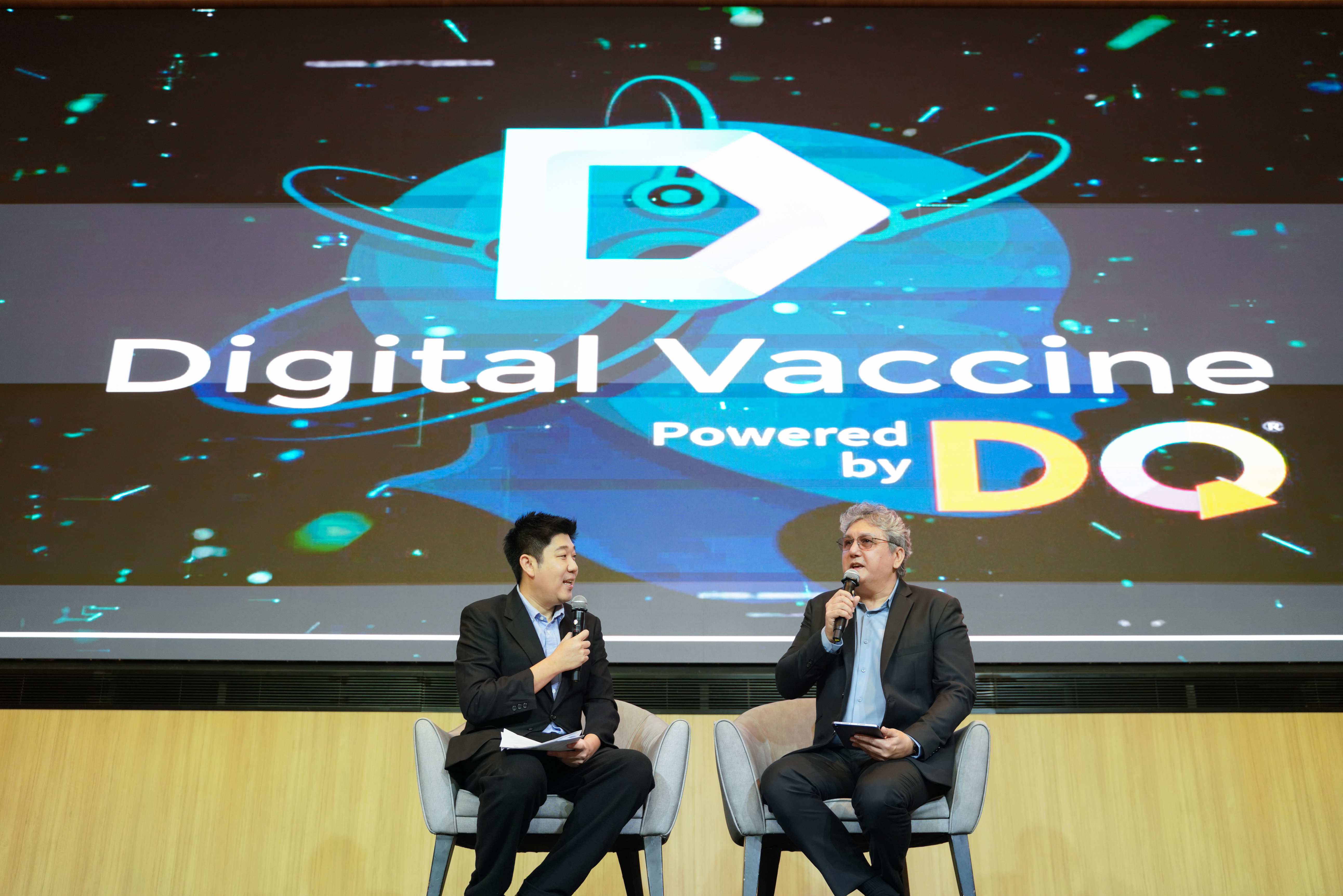 นายจอห์น รัตนเวโรจน์ ประธานสมาคม และนายมหาสมุทร รัตนเวโรจน์ อุปนายกสมาคมเครือข่ายเพื่อการเรียนรู้เท่าทันดิจิทัลเทคโนโลยี (D-Tech) ได้นำเสนอการดำเนินงาน “Digital Vaccine Powered by DQ” ที่ตั้งเป้าพัฒนาพลเมืองดิจิทัล 50,000 คนภายในปี 2027