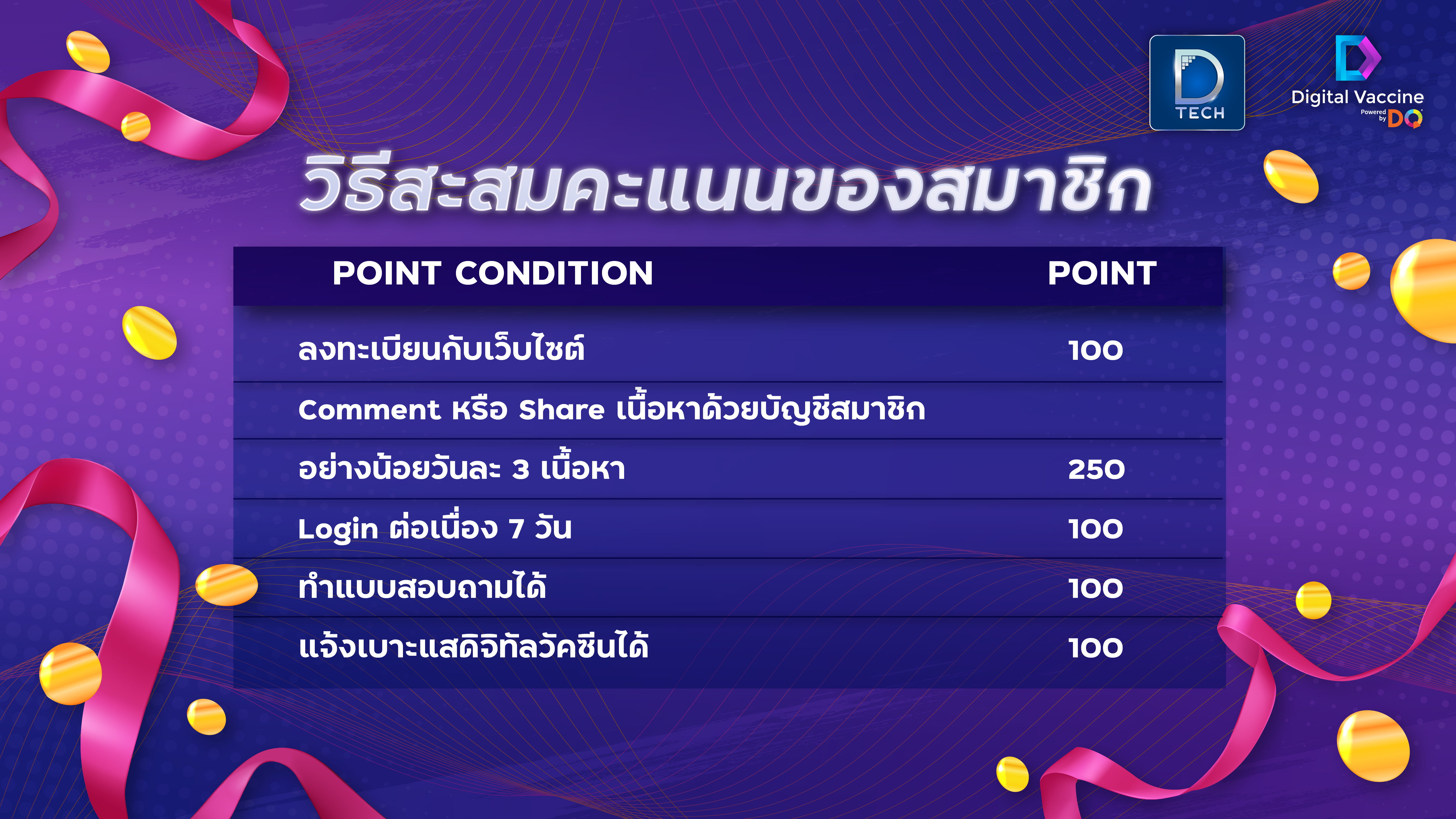 ลงทะเบียนกับเว็บไซต์ → 100 คะแนน